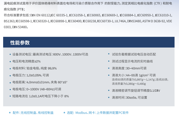 數(shù) (CTI) 和耐電痕化指數(shù) (PTI)。另外設備結構允許通過微調測試電壓、電流